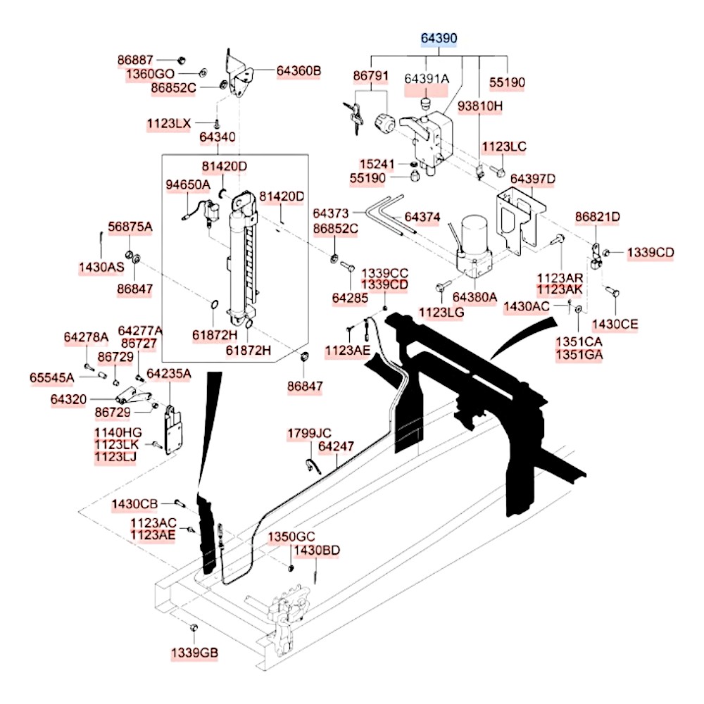 Цилиндр механизма подъема кабины HD170 260 270 #. Артикул 643907A001. Производитель Оригинал. Изображение №1