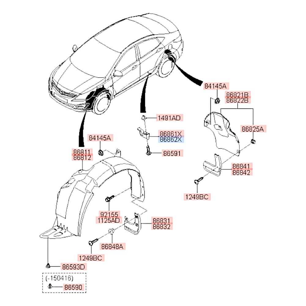 Брызговик заднего колеса передний правый Solaris Rio #. Артикул 868621R000. Производитель Оригинал. Изображение №1