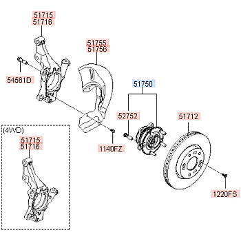 Ступица колеса переднего 09-22 I30/I40/Sonata/Tucson/Optima/Sportage/IX55/SantaFe/Sorento