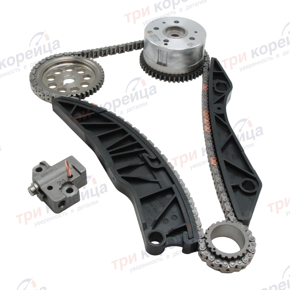 Комплект ГРМ (цепь+натяж+два усп+звезд+фаза) Solaris I30 Elantra Creta Rio Carens Cerato Ceed Soul Оригинал 243502B010KIT. Фото №2 в каталоге ТРИКОР.