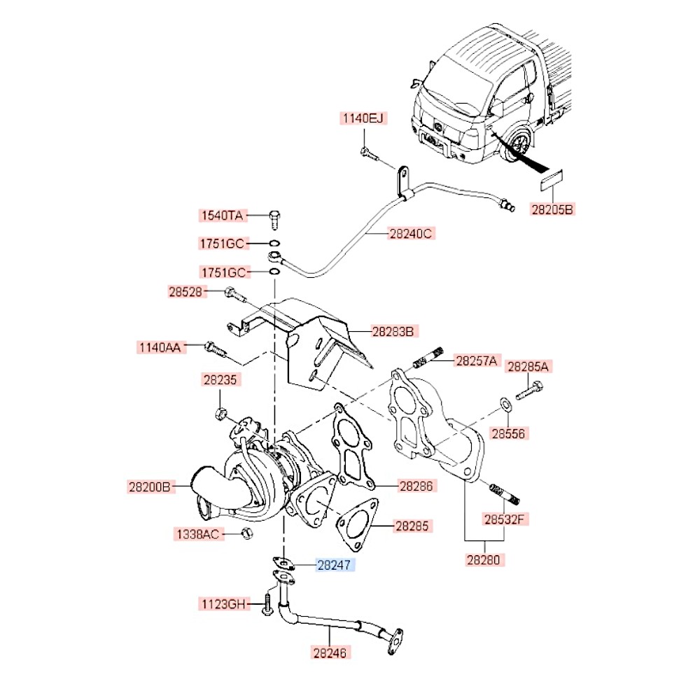 Прокладка маслоотводящей трубки турбокомпрессора D4BF Porter