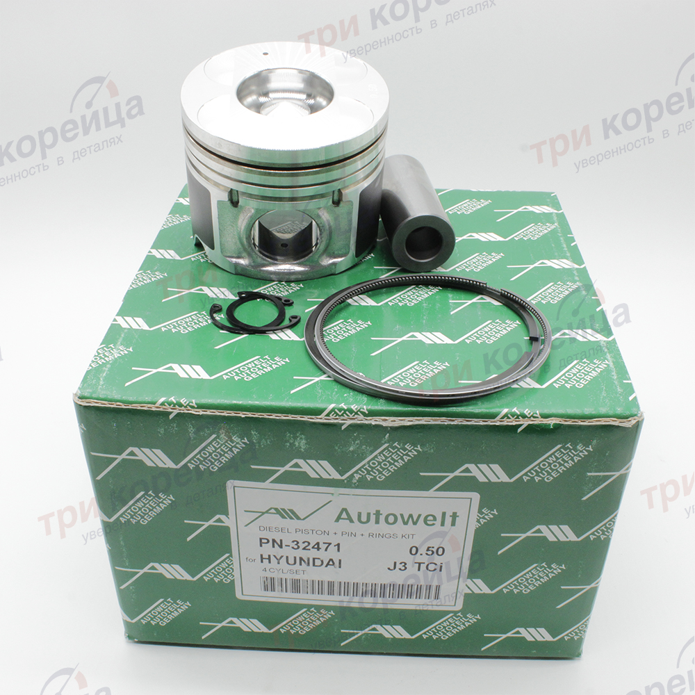 Поршнекомплект двигателя 0,50 (к-кт. 4шт. + пальцы + поршневые кольца) 2.9 J3 Bongo3 Terracan # Autowelt Германия PN32471. Фото №2 в каталоге ТРИКОР.