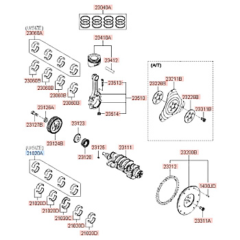 Вкладыши коренные комплект STD G4LC 1.4 KAPPA Solaris Rio
