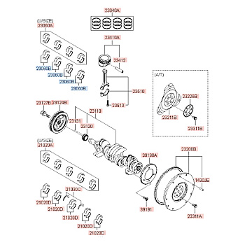 Вкладыши шатунные STD (ком-кт на 4 шатуна) 2005-2010 Rio Spectra