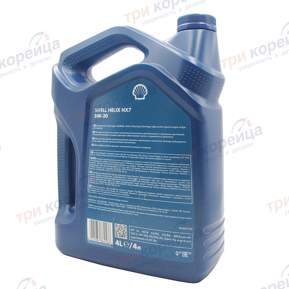 Масло моторное SHELL HELIX HX7 A3/B4 5W-30 (4л) Shell Нидерланды 550046351. Фото №2 в каталоге ТРИКОР.
